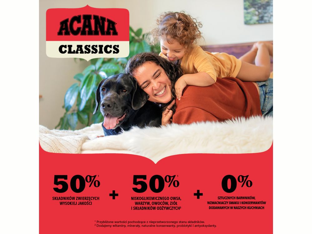 ACANA pochodzi z tych samych kanadyjskich zakładów Champion Petfoods co topowe karmy premium, zachowując wysokie standardy jakości przy bardziej przystępnej cenie.