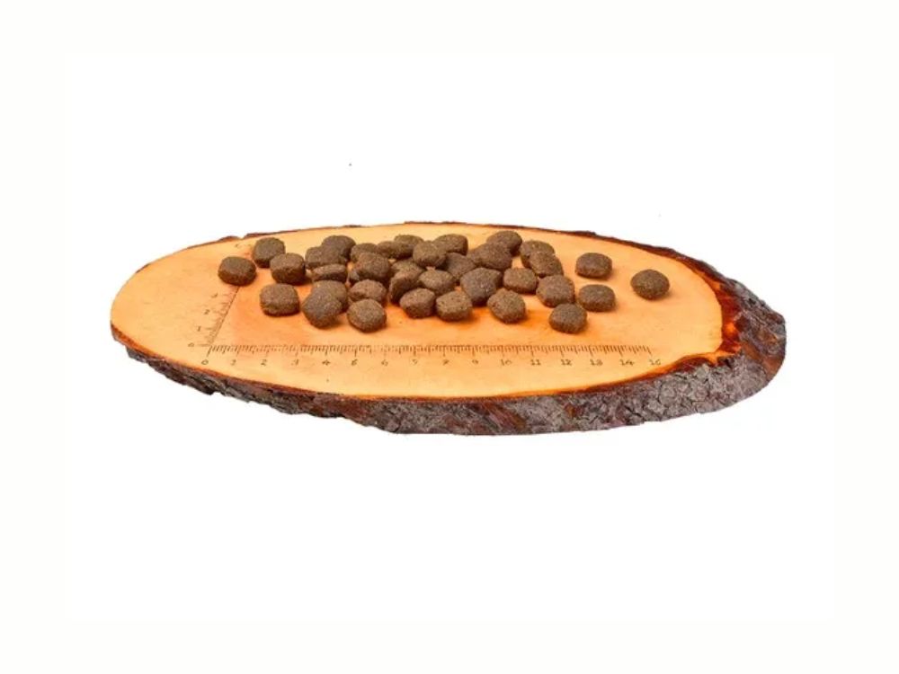 Skład: mączka z dziczyzny (30%), mączka z jagnięciny z wolnego wybiegu (25%), groch żółty (20%), tłuszcz drobiowy (10%), wątróbka z kurczaka (3%), jabłka (3%), skrobia z manioku (3%), olej z łososia (2%), marchew (1%), siemię lniane (1%), ciecierzyca (1%), glukozamina, chondroityna, MOS, FOS, juka, algi, łupiny psyllium, żurawina, jagody, maliny, zioła.